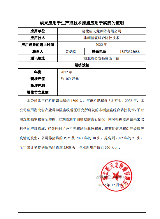 发布人:湖北省农业科学院畜牧兽医研究所 荆门景阳畜禽有限公司