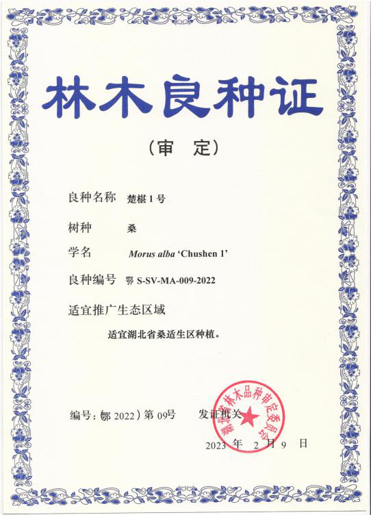 以‘竹山3号’为母本,‘粤诱78号’为父本杂交选育而成。2023年2月9日通过湖北省林木良种品种审定委员会审定(鄂S-SV-MA-009-2022)。树形直立,树冠较紧凑,成枝力较强,枝条长而直。定植2 年开始挂果,3 年进入盛果期,单株产果量最高达17.43kg,亩产1500kg~2000kg。果实黑色,椭圆形,可溶性固形物10.7%~13.4%,可滴定酸5.01g/kg~11.50g/kg,花青素含量1562.6mg/kg~1996.7mg/kg。较现行品种风味偏甜不同,酸甜适中,口感好,可兼做鲜食和加工。具有较强的抗寒性,枝条冻枯率为2.2%,菌核病平均发病率仅1.41%。适用于湖北省及生态条件相似地区种植。