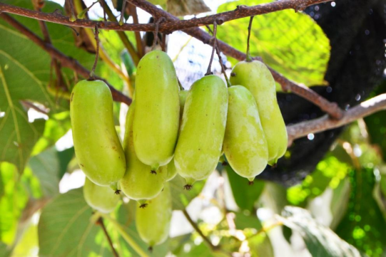 优质大果型红肉软枣猕猴桃新品种,由野生资源驯化。2023年9月5日获得植物新品种权(CNA20201002248)。长圆柱形,平均单果质量28.76g。可溶性固形物16.3%,干物质含量18.2%,可溶性糖11.4%,总酸1.27%,维生素C778mg · kg-1。果实后熟果皮、果肉均转为红色,风味酸甜可口,清香多汁。极早熟,在鄂东南低海拔地区8月中旬成熟。适合我省高山地区、猕猴桃溃疡病高发区以及都市休闲农业发展种植,盛果期平均产量10200kg·hm-2。