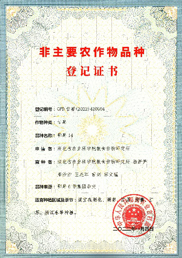 以‘鄂薯6号’母本,采取集团杂交的方式获得的兼用型甘薯品种。2022年通过非主要农作物品种登记(GPD甘薯(2022)420004)。中蔓,分枝数9-10个,茎蔓较粗。叶形浅缺刻,顶叶黄绿色带紫边,成年叶和茎蔓均为绿色,叶脉浅紫色。结薯集中,薯块整齐,单株结薯4个左右,薯块长纺锤形,红皮淡黄肉,大中薯率高。在长江中下游薯区新品系多点鉴定第一年试验中,鲜薯产量2246.5Kg/亩,较对照徐薯22增产17.77%。第二年鲜薯产量1838.2Kg/亩,较对照徐薯22增产11.16%。鲜薯可溶糖含量6.61%以上,蔗糖含量0.89g/100g FW,还原糖含量2.98g/100g FW,膳食纤维含量2.67g/100g FW。高抗蔓割病。适宜种植区为长江中下游地区与部分南方薯区。